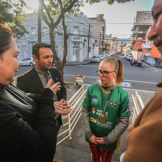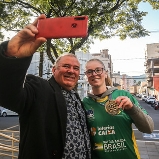 Ao ser entrevistada após a conquista por um importante canal de televisão da região, a nossa atleta, com a humildade própria dos grandes, disse simplesmente: "a medalha é um sonho, depois de muito treinar em Santa Maria para a conquista do terceiro lugar representando o Brasil". Assista ao vídeo da homenagem: